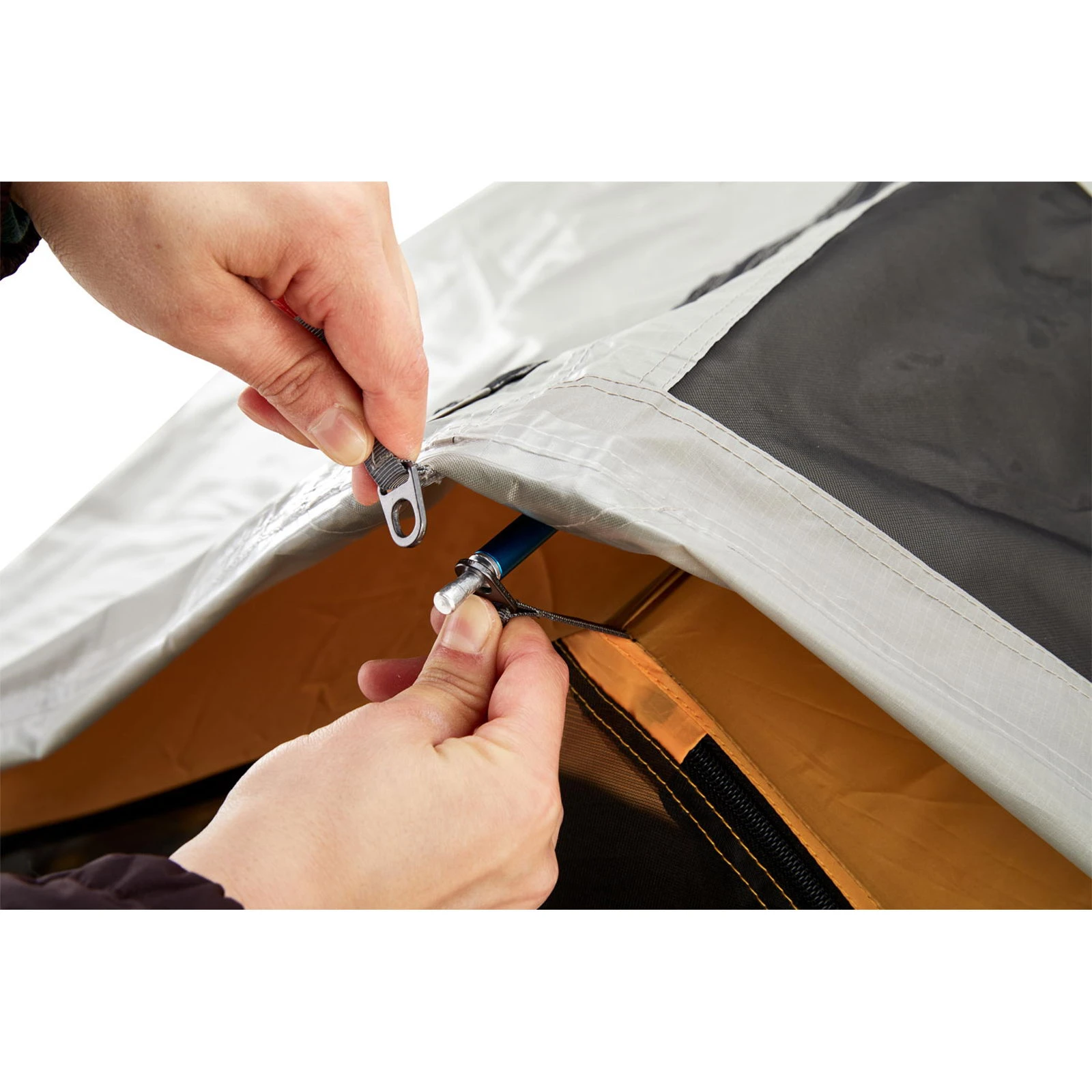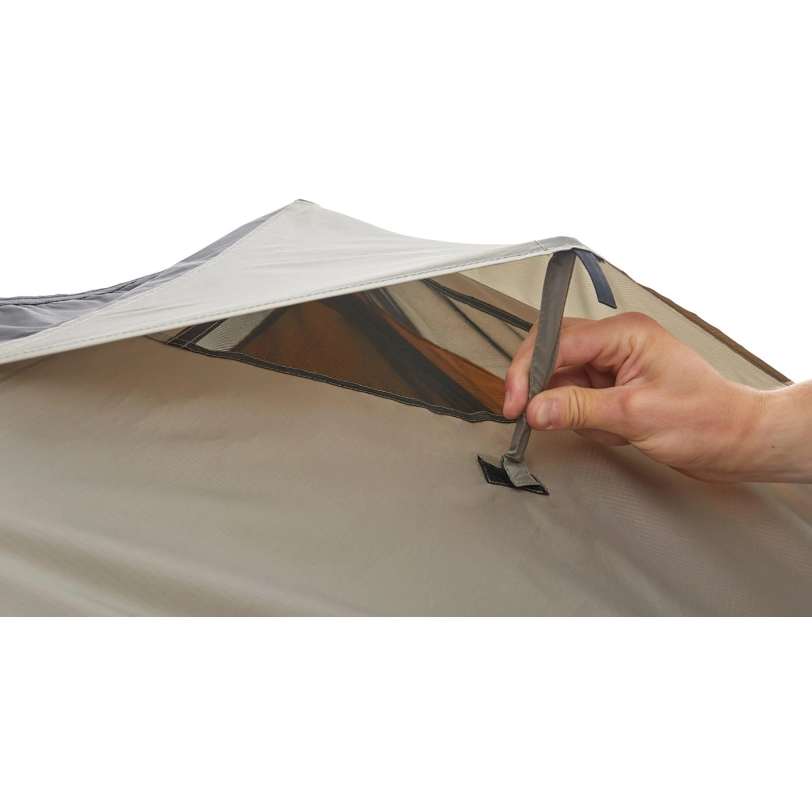 Das Venture 3 von Wechsel Tents ist ein geräumiger und gleichzeitig kompakter Geodät für drei Personen mit zwei Eingängen und zwei Apsiden. Das Innenzelt des Venture 3 wird zuerst aufgebaut. Das unvergleichliche Stangendesign sichert die strukturelle Stabilität für einen zuverlässigen Einsatz während der drei Jahreszeiten und erhöht sowohl das Platzangebot im internen Wohn- als auch im Apsidenbereich. Das Innenzelt ist in den Türen sowie am Fuß- und Kopfende mit Mosquitogazen ausgestattet, die für eine optimale Belüftung sorgen. Die großzügig geschnittenen Türen machen das Ein- und Aussteigen besonders komfortabel. Innenzelttaschen sorgen für Ordnung und bieten Platz für sonst herumliegenden Kleinkram. In seiner Größenordnung ist das Venture 3 mit 3,08 kg (inkl. Packsack) ein Leichtgewicht.
